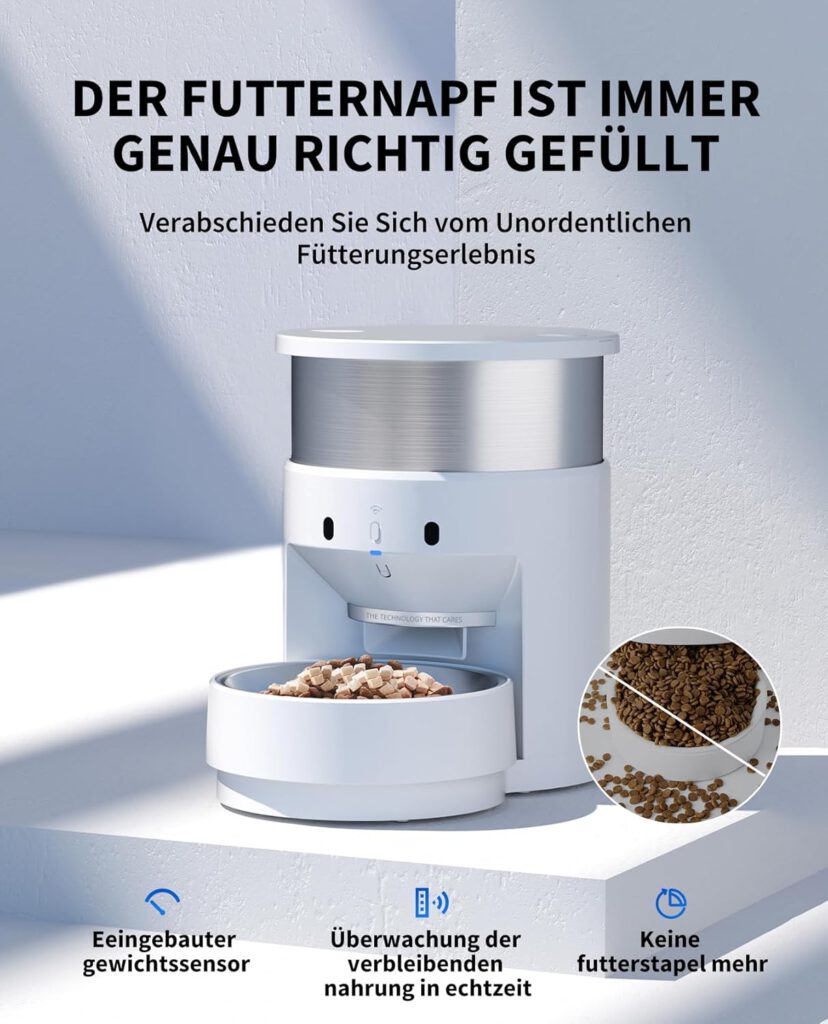 Der Futterautomat gibt das Futter dann präzise und nach Plan aus, sodass du sicher sein kannst, dass dein Haustier immer zur richtigen Zeit das richtige Futter erhält.